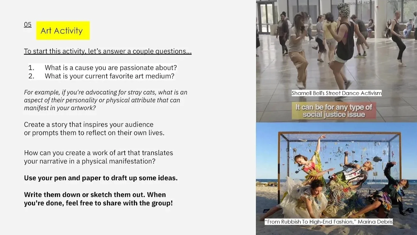 Create a story that inspires your audience or prompts them to reflect on their own lives. How can you create a work of art that translates your narrative in a physical manifestation? Use your pen and paper to draft up some ideas. Write them down or sketch them out. When you're done, feel free to share!